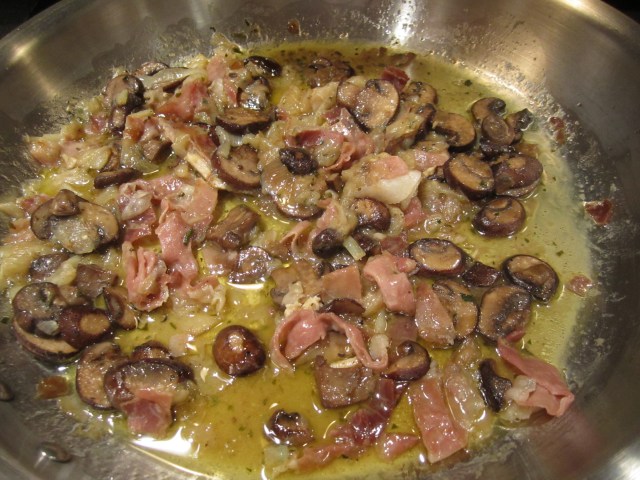 Lordy. I make this ambrosia-like pasta for dinner last night as a Primi. Had I not been at my house, I would swear I must be back in Italy. I followed the recipe exactly. EXCEPT that I lacked Franco’s “pan drippings” and crimini mushrooms for the Sauteed Mushrooms Recipe. So I sauteed 1 lb. of dark regular Bella muschrooms pre-sliced from Publix and added about 1/2 a small onion thinly sliced to Franco’s Sauteed Mushroom recipe. After the mushrooms were cooked (which took a good 5 minutes longer on my stove to ensure they were “fairly dry” and not too wet), I spooned them into a bowl. Then I proceeded to cook the Proscuitto, Butter etc in the same pan. Then I added back in the mushrooms, following the recipe exactly. This dish is simple and sublime. Thanks Franco! I can’t wait to eat my left overs tonight.