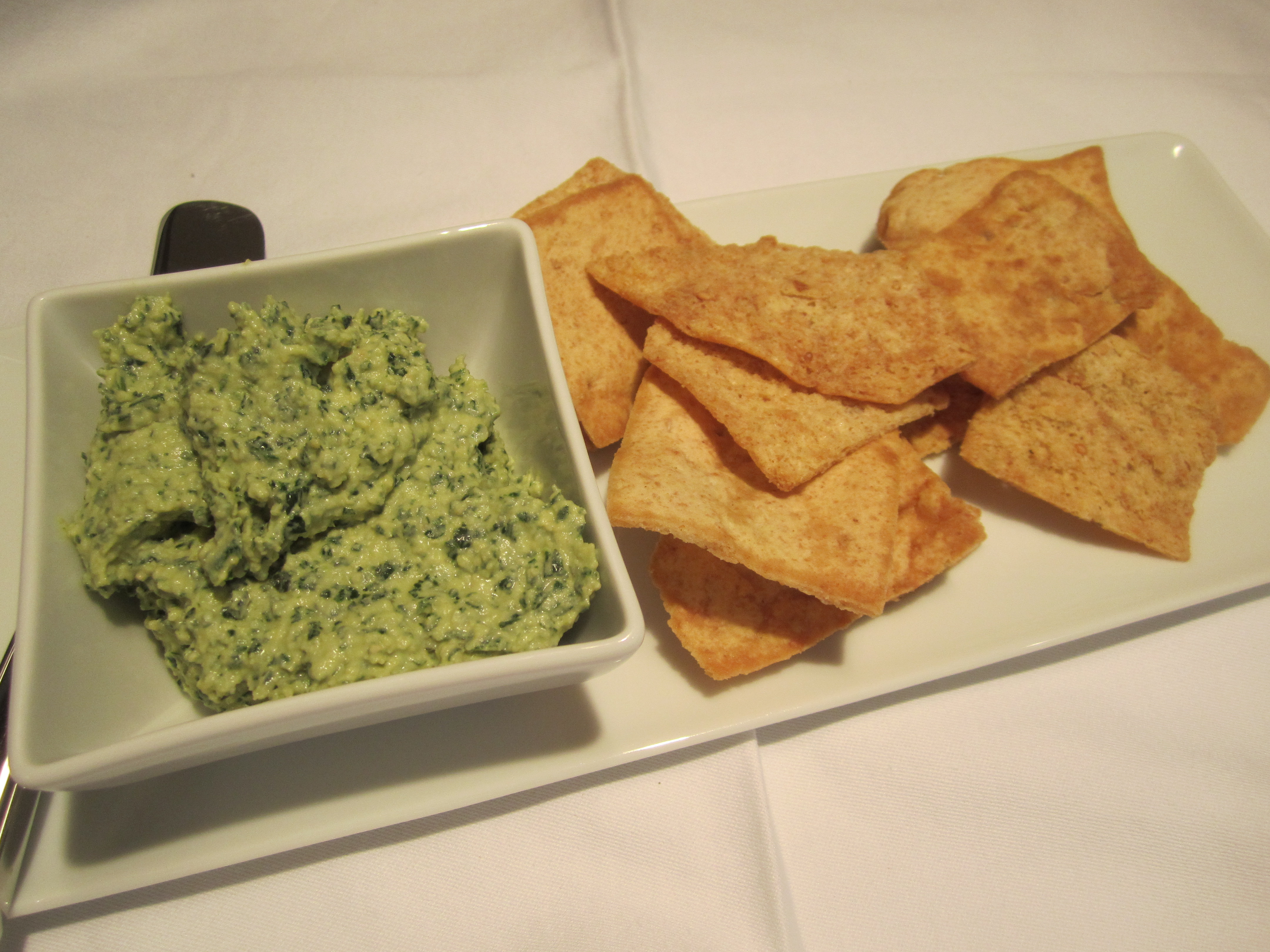 Although hummus is very easy to find at most fine food markets, I always prefer make my own, for the simple reason that most brands of hummus contain raw garlic, which I don’t care for in any recipe. Making hummus is as easy as pressing the button of the food processor–just combine canned chickpeas, tahini (sesame paste), lemon juice, salt and a touch of water, and process to a smooth paste. Add to this a couple of handfuls of cooked tuscan kale, and you have the perfect light(er), green dip to serve with pita chips.