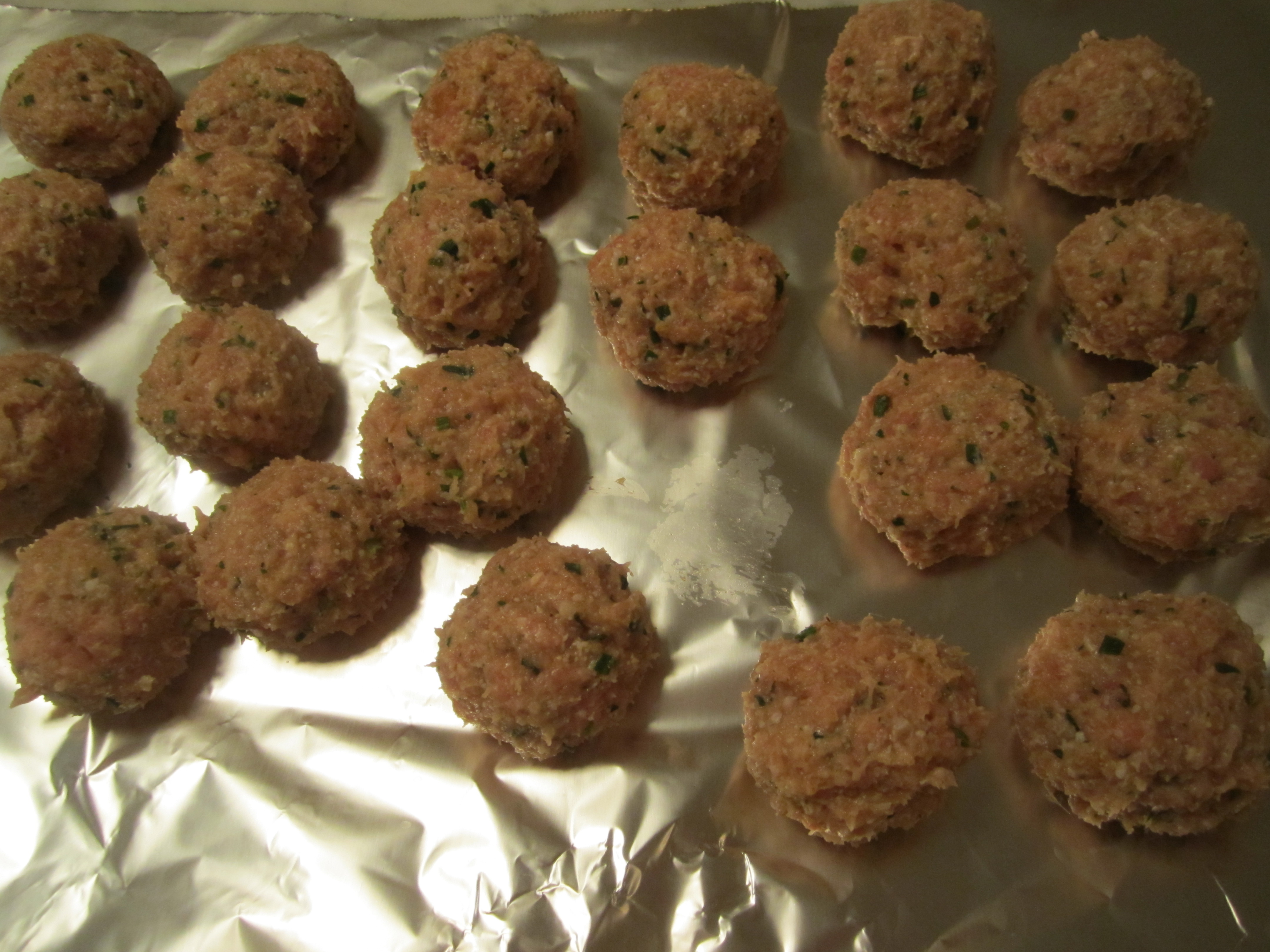 Mix gently to combine with hands or a fork. Form into 1 1/2″ balls and set aside.