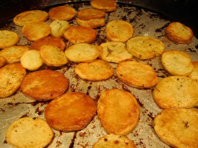 For the roasted potatoes, I chose my mother’s method of peeling and slicing into disks, sprinkled with rosemary, oil and salt, and roasted at 400 degrees, uncovered, for about 40 minutes. If these weren’t so simple to make, they’d be worth a post on their own!