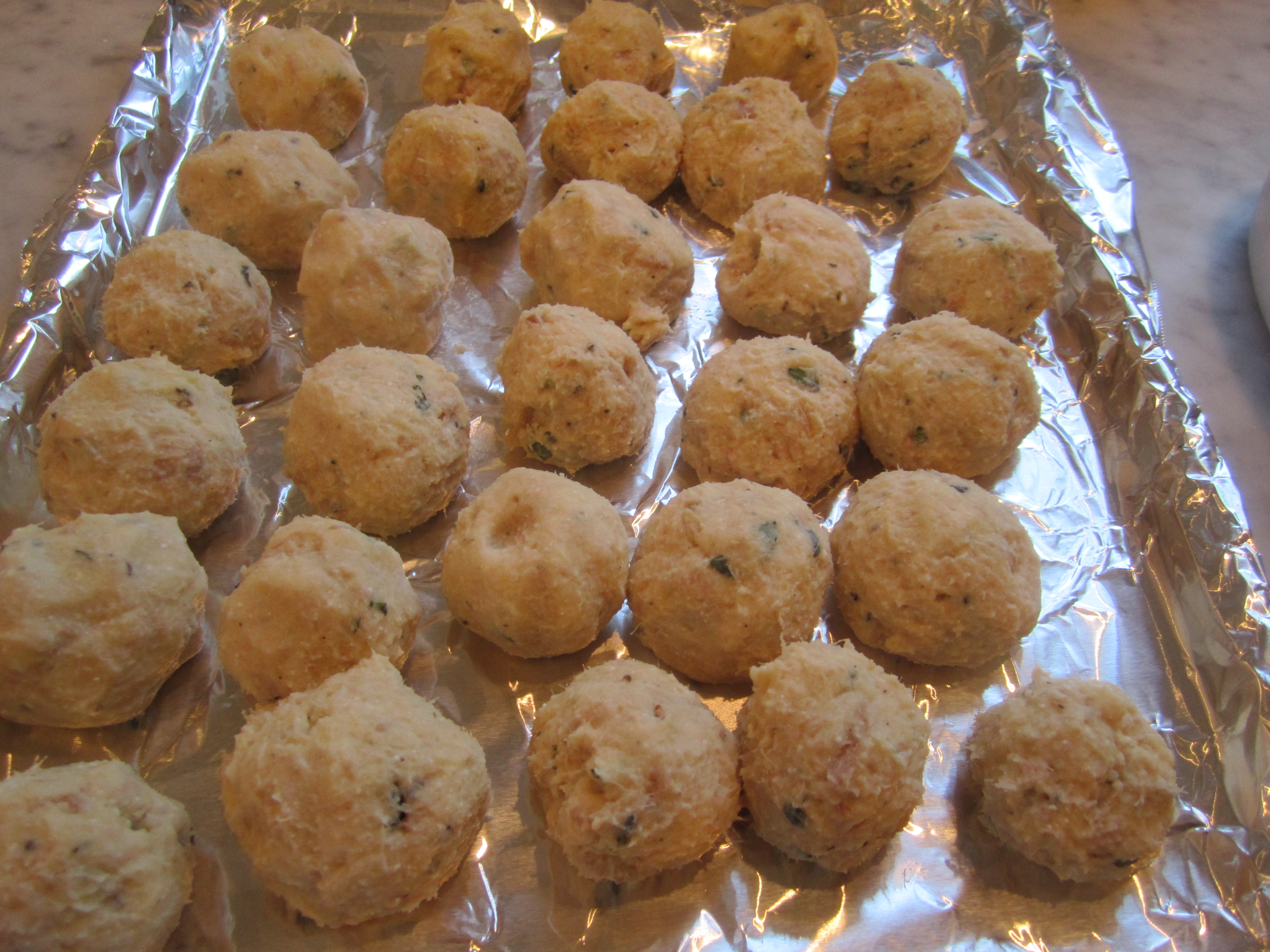 I like these croquettes luke-warm or cold. If they’re eaten too hot, their flavor is a bit dull. As they cool, their flavors meld and the marjoram perfumes the entire mixture. I don’t ever re-heat them, as they become too fishy.