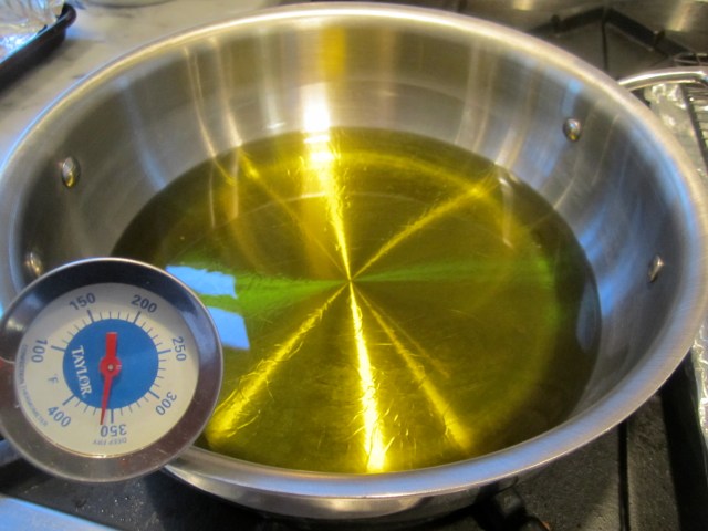 Fry in batches, keeping the oil between 350 and 375 degrees the entire time.
