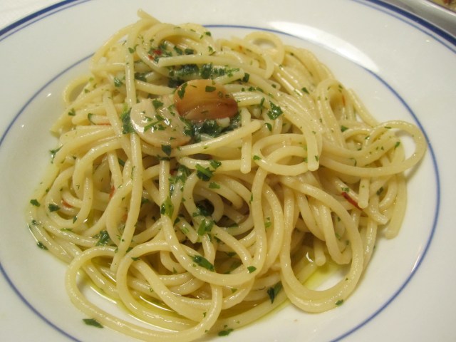 Tonight, we began our meal with pasta, aglio, olio, e peperoncino.