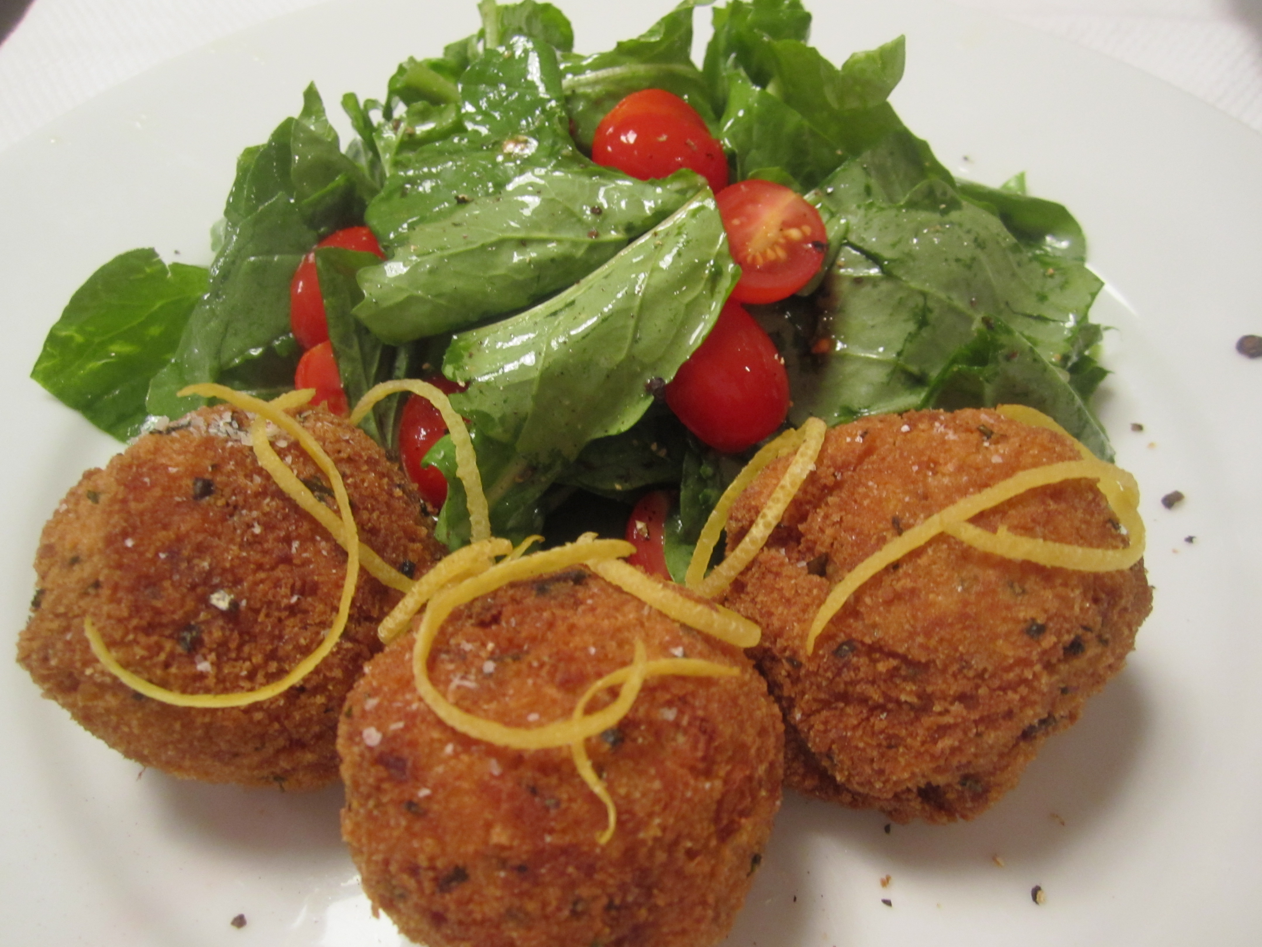 We had the croquettes as a second course, with arugula and tomato salad, dressed with lemon and olive oil.