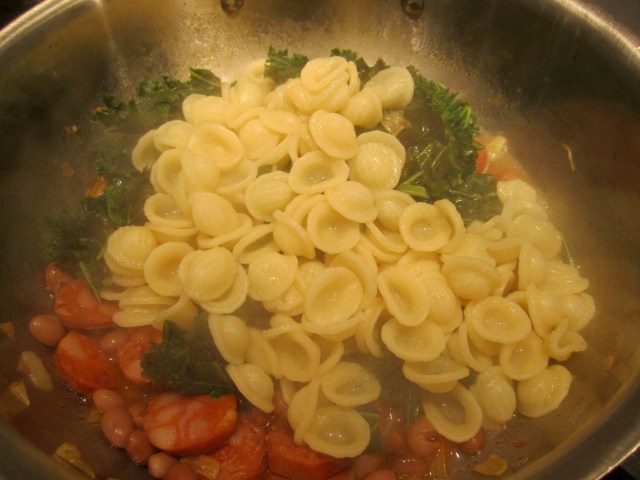 Orrechiette with Chorizo, Kale and Cranberry Beans