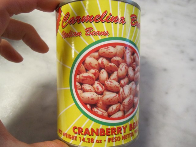 Generally I try not to use canned beans (except for chick peas, which I only use canned). Recently, however, I’ve found an imported brand of cranberry beans which retain their body and firmness, and I love using these in all kinds of soups and stews.