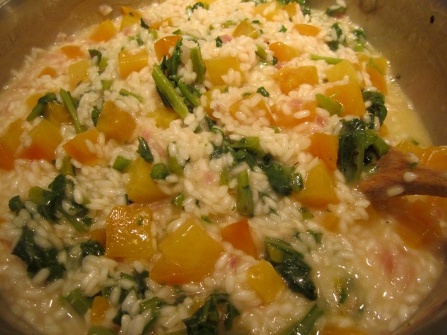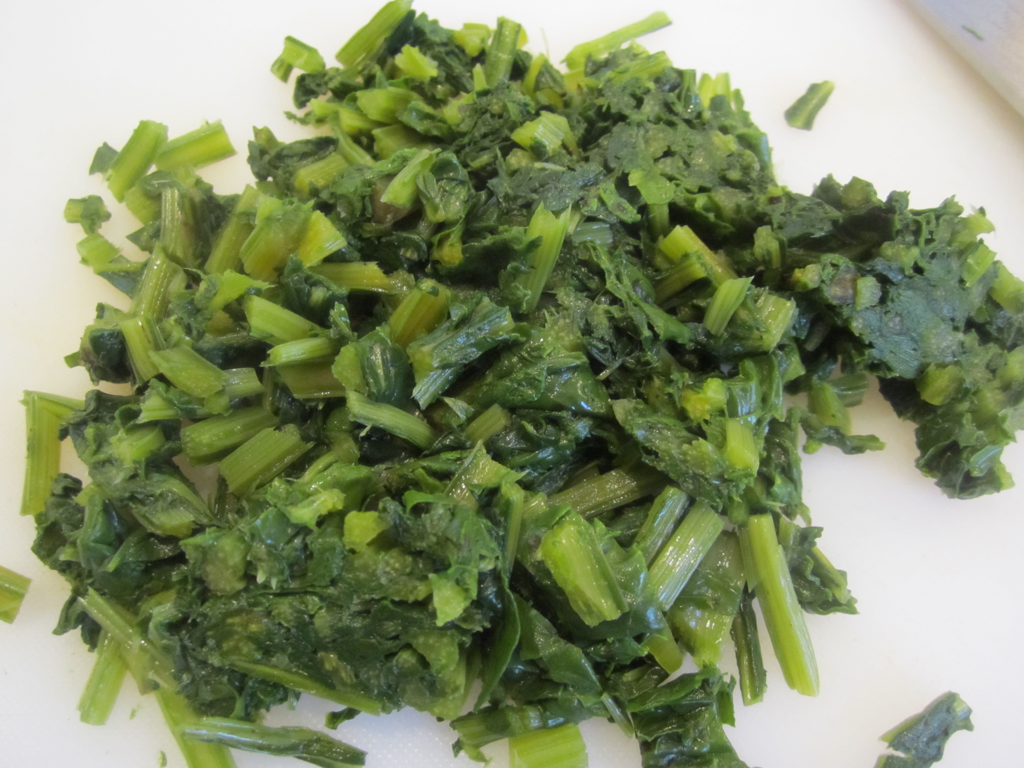 Rinse with cold water and squeeze in small bunches to remove excess water. Chop into 1/2″ dice and set aside until ready to prepare risotto.