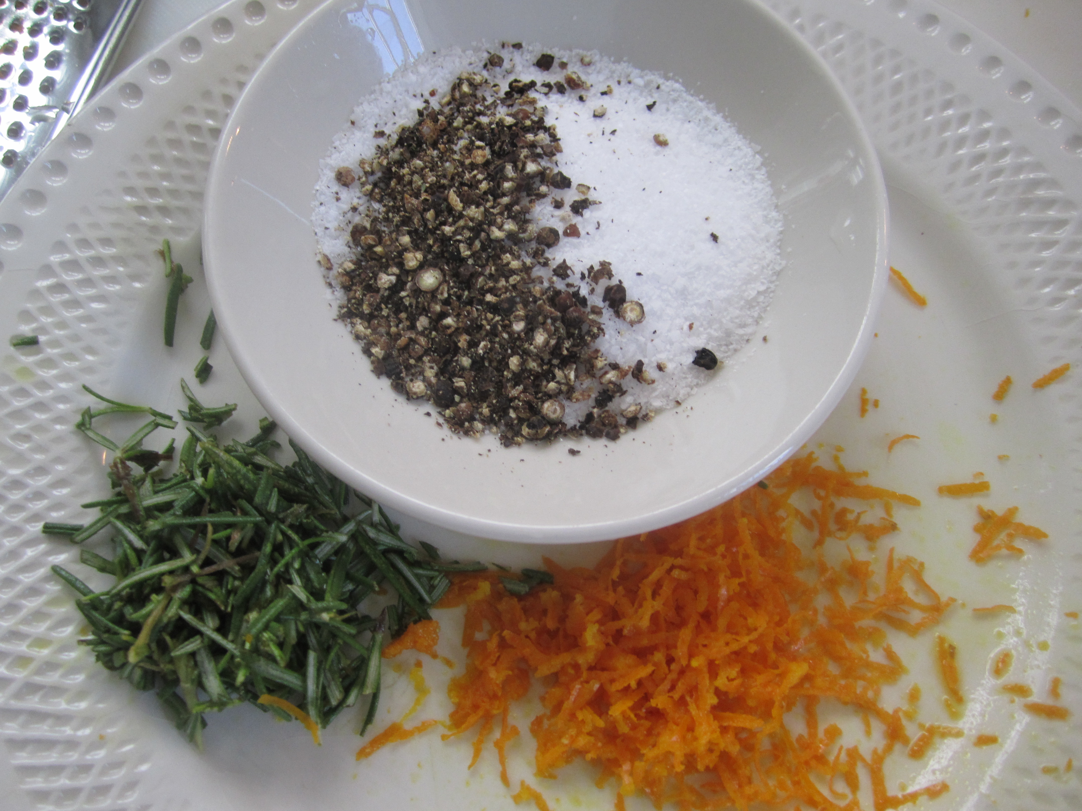 I like to dry-brine the breast with plenty of salt, pepper, chopped rosemary and orange zest. I also add a bit of olive oil to disperse the seasonings. This can be done about 6 hours ahead of cooking time.