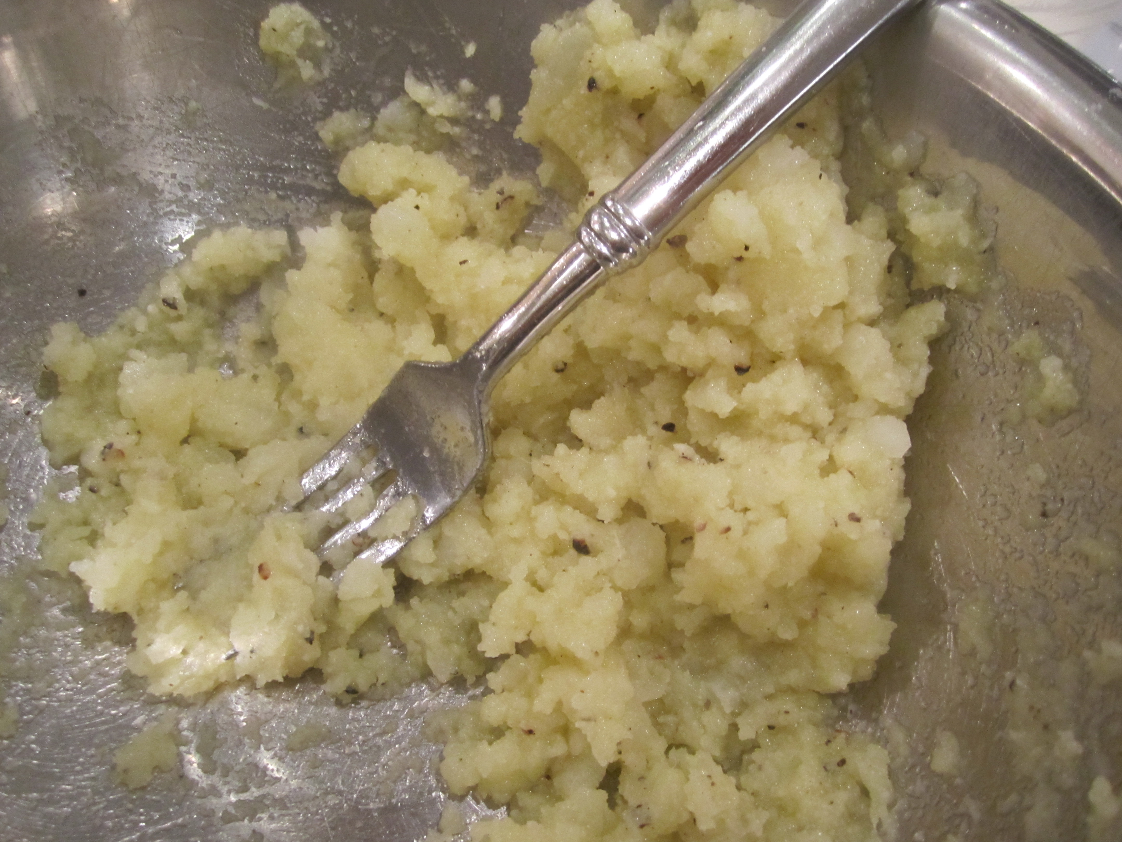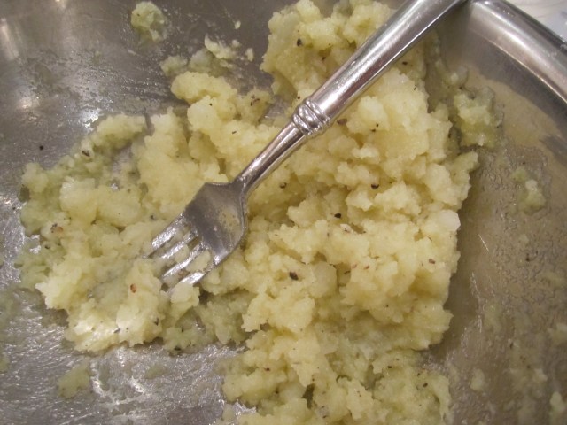 Mash with a fork until uniformly soft and combined into a slightly lumpy mass.