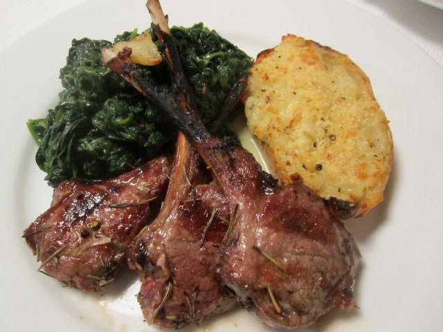Along with the chops and potatoes, we had simple sauteed spinach with garlic and olive oil.