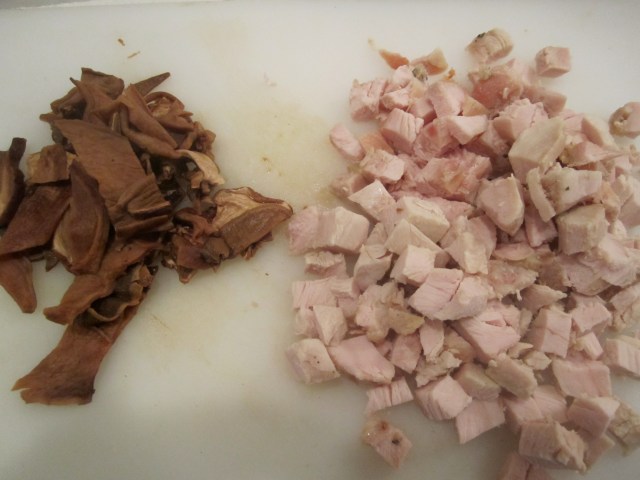 In addition to the porcini, I added a cup of diced turkey breast to the risotto, to make this a hearty main dish. For the recipe and technique, see my Porcini Risotto. At the end of the cooking process, before covering the risotto, simply add a cupful of diced turkey breast.