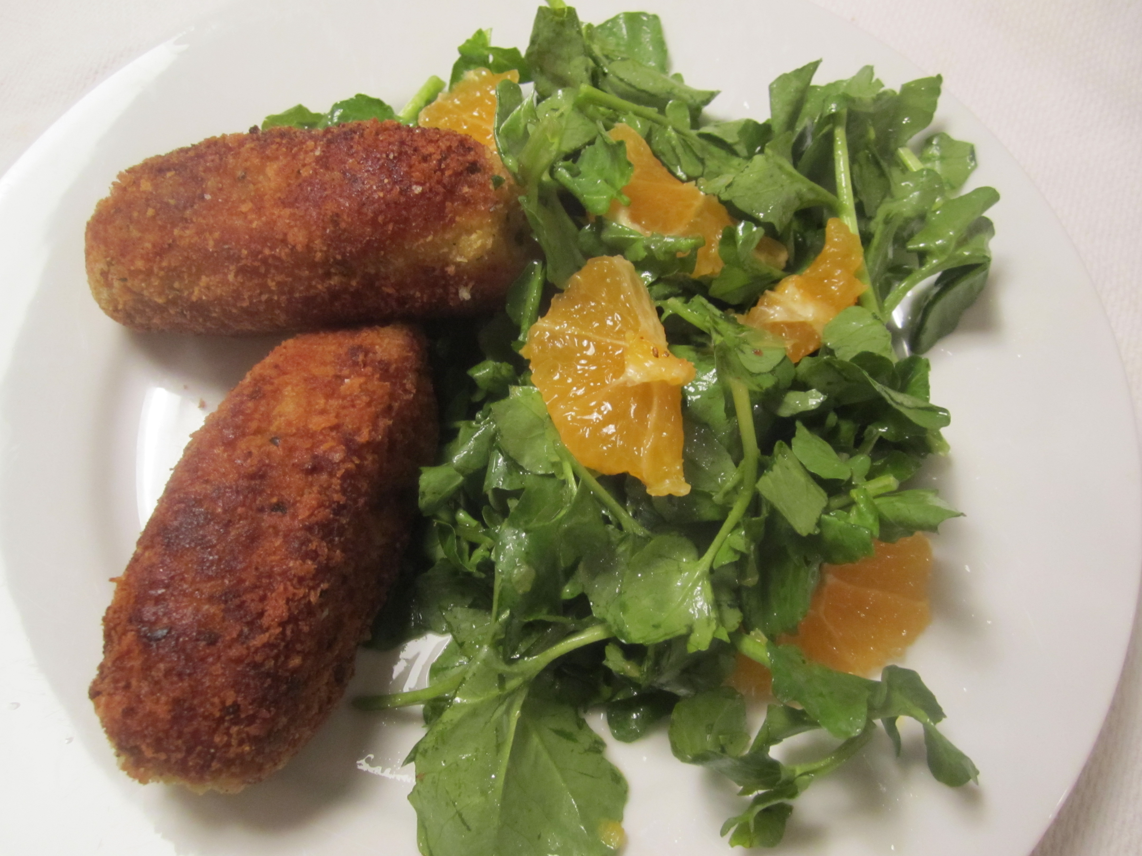 To accompany the croquettes, I made a salad of watercress and clementines, dressed with red wine vinegar and olive oil.