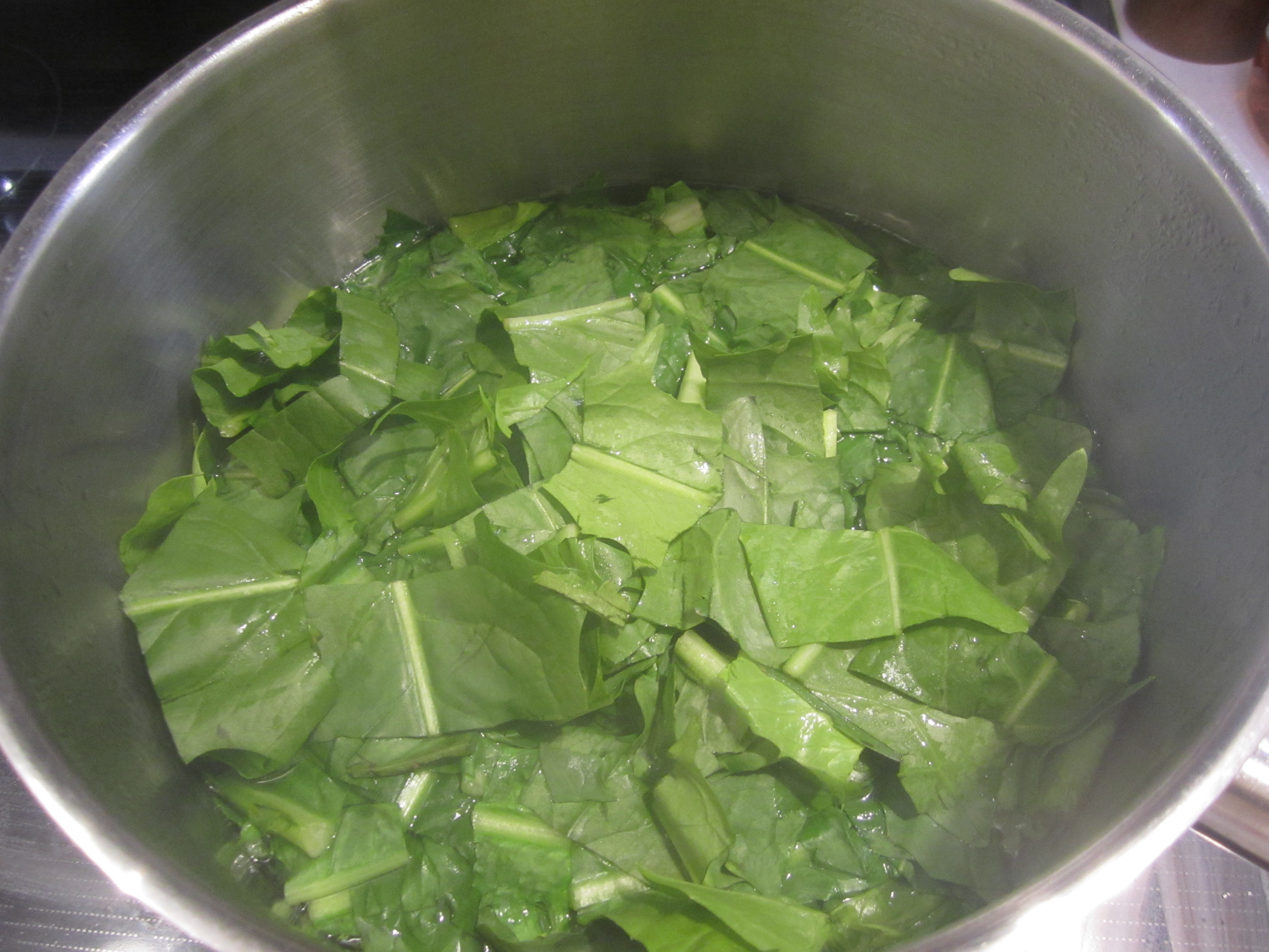 Add the dandelion greens and cook for another 3 minutes, until all has returned to the boil.