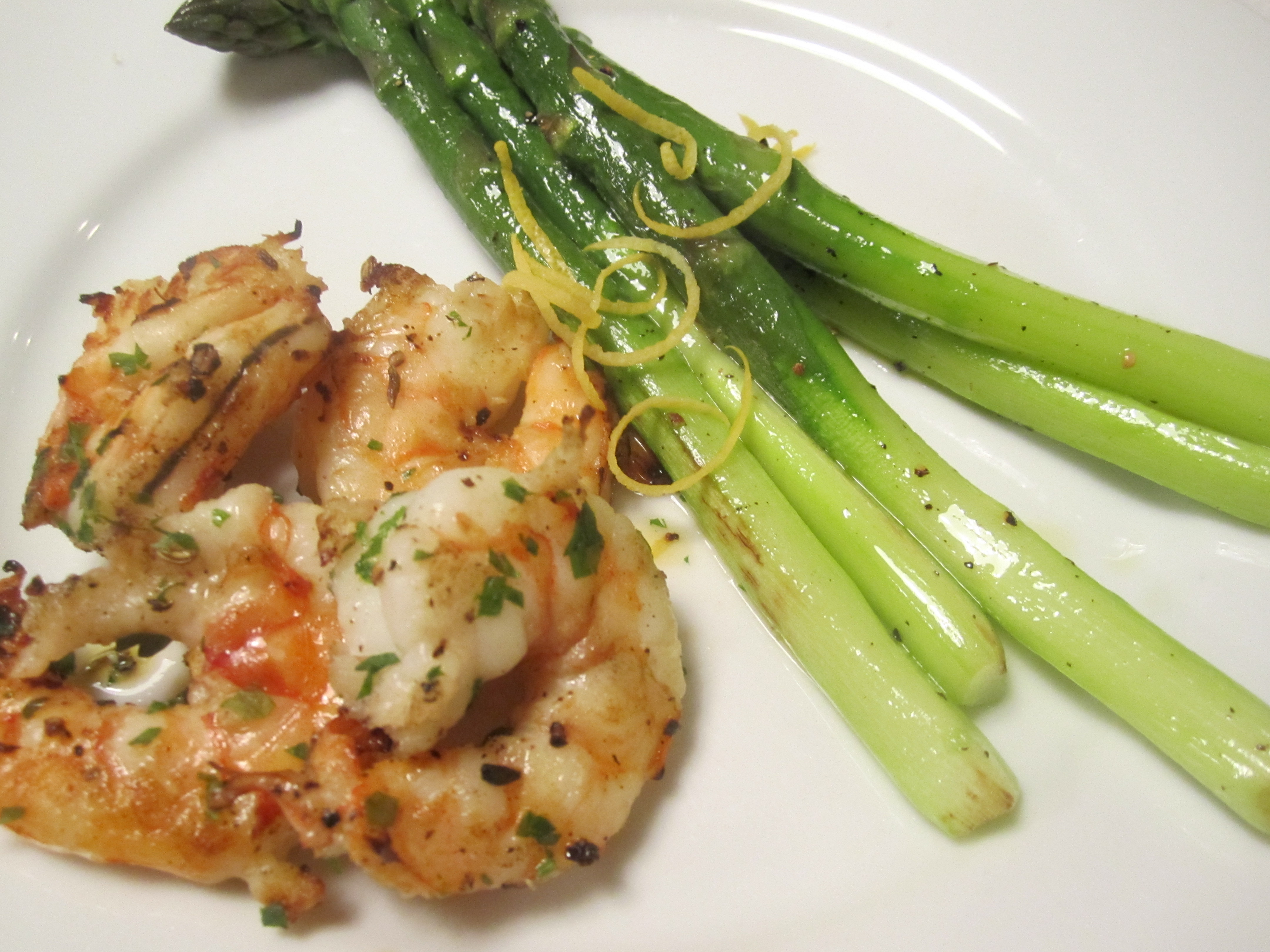 Tonight, as a main course, we had grilled shrimp, rubbed with chili flakes, lemon zest and fennel seeds.