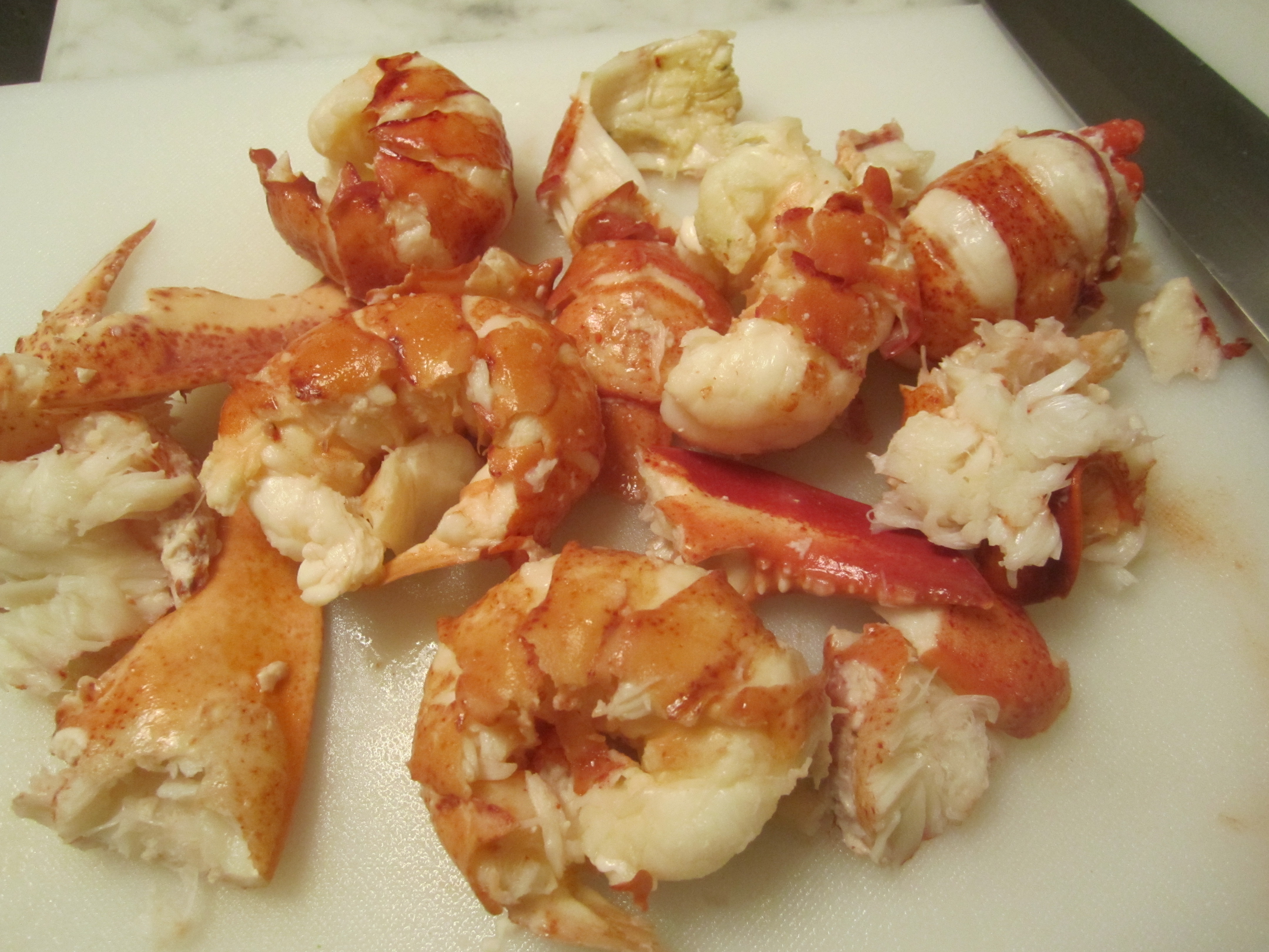 First, begin with just-cooked fresh lobster meat (preferably par-cooked, so that the extra couple of minutes simmering in the sauce will not toughen the already-cooked meat too much. )