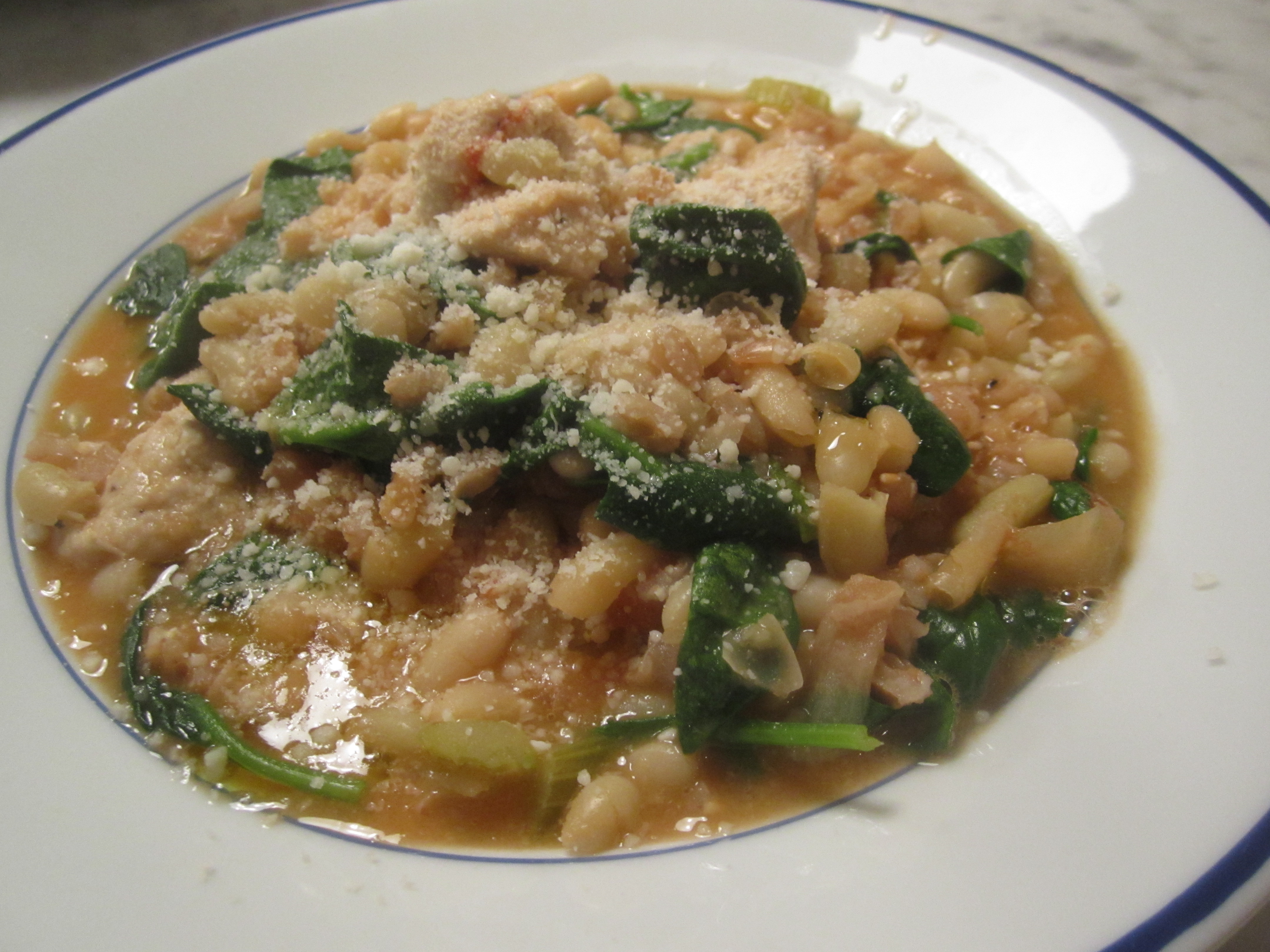 Add beans, farro, and more bean liquid, if a more soupy consistency is desired.