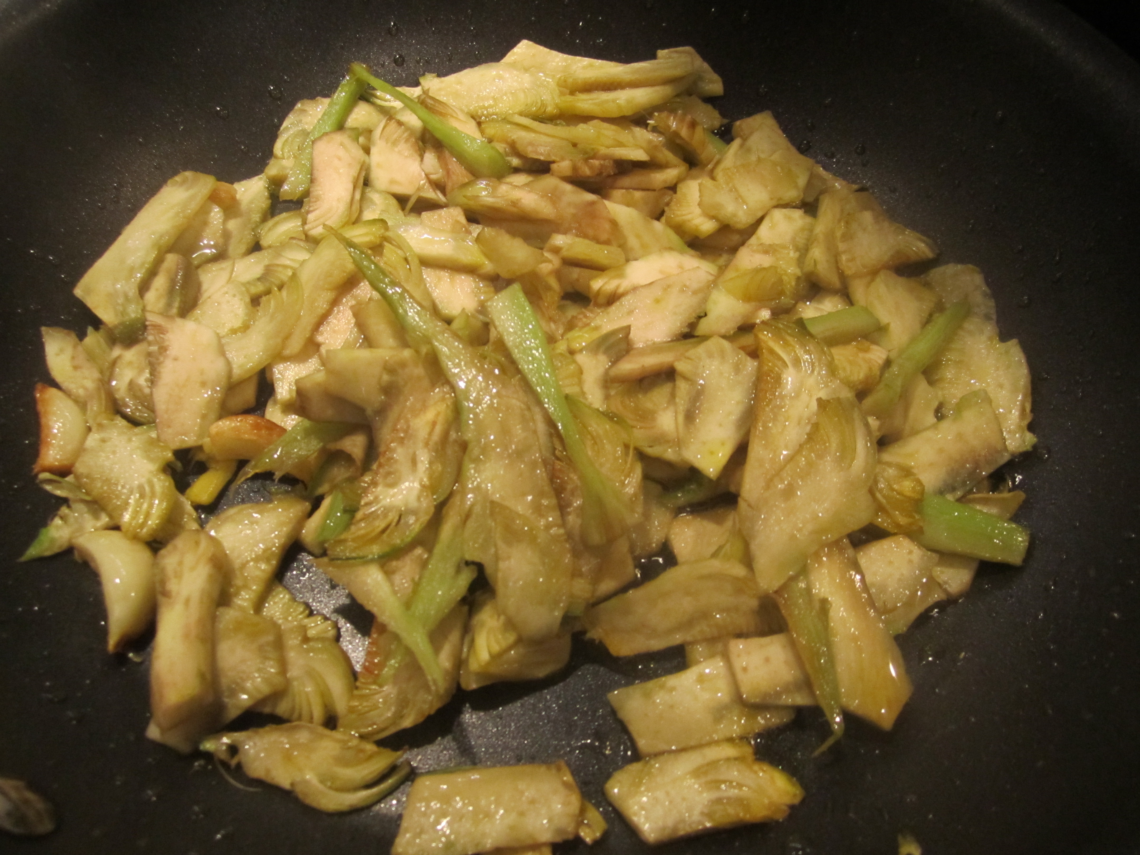 Allow the artichokes to saute on low heat for 5 – 7 minutes on medium heat.