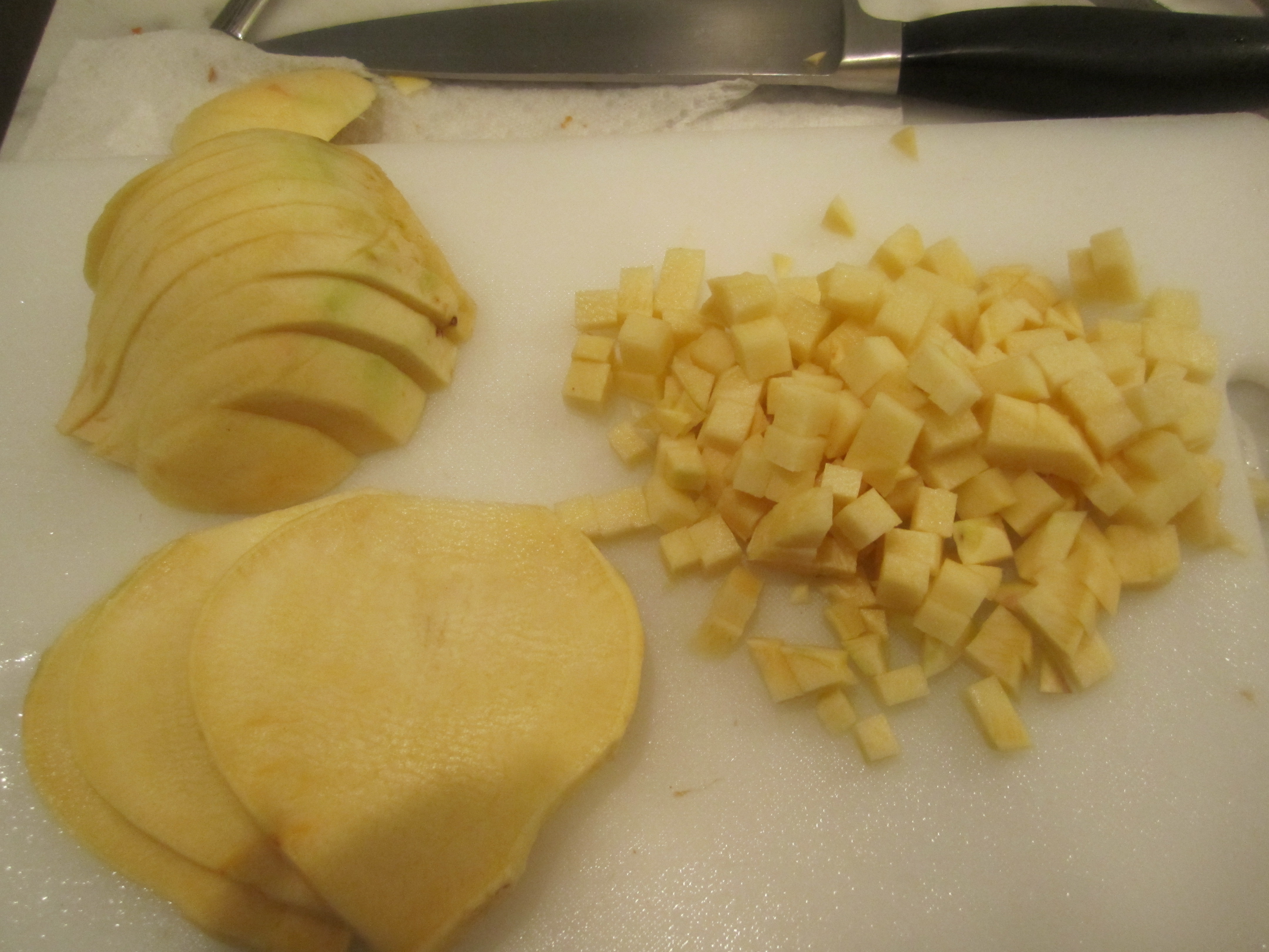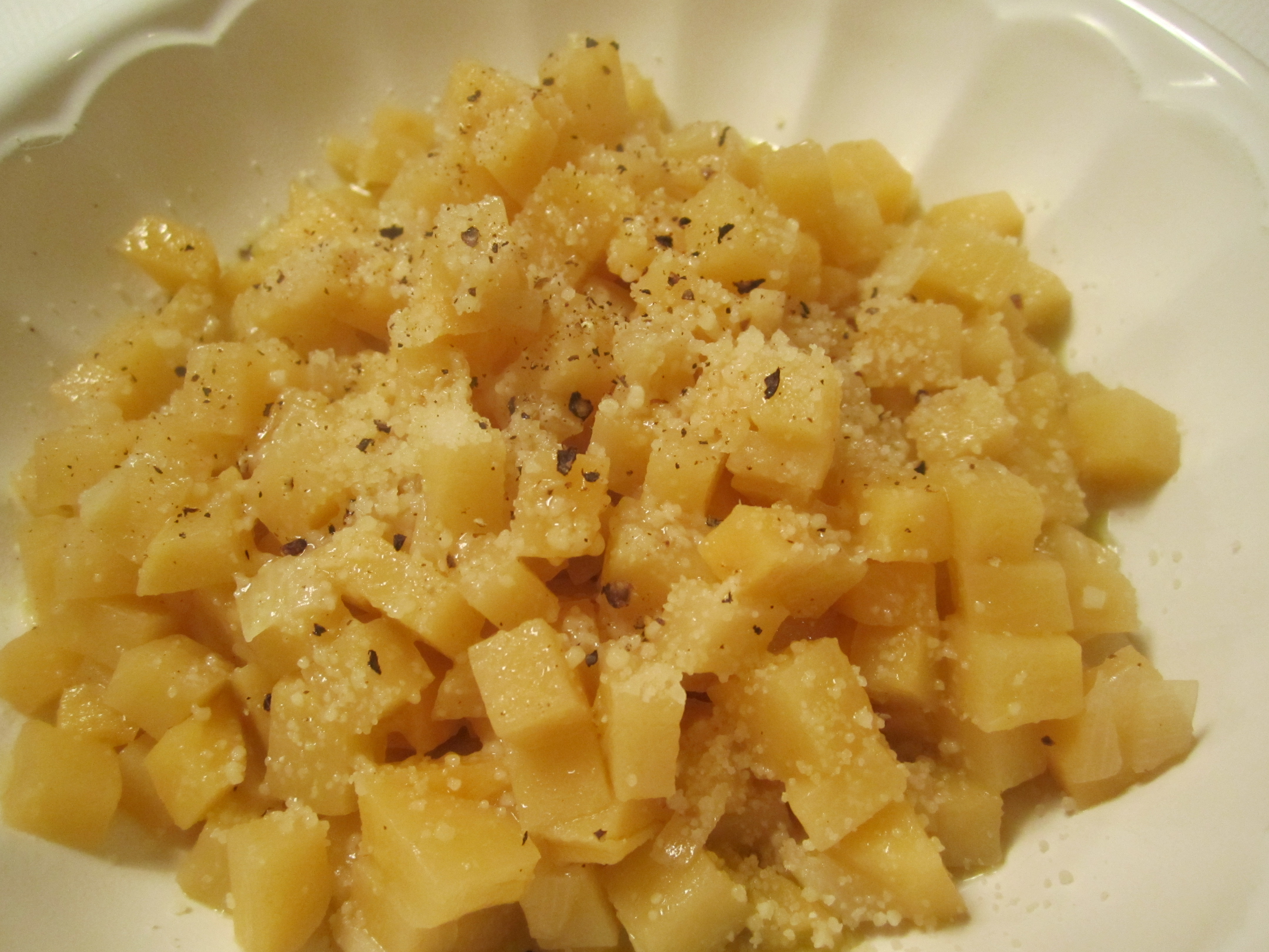 Tonight, I decided to make risotto out of the rice that held the white truffles I bought a couple of weeks ago (see pasta with white truffles). Because the rice had held the truffles, it was very stongly infused with their magical flavor. Therefore, I added an equal amount of plain rice to the risotto to maintain a subtle undertone of truffle flavor without it being overpowering–it was a wonderful complement to the elegant, refined sauce and sweet, delicate scallops.