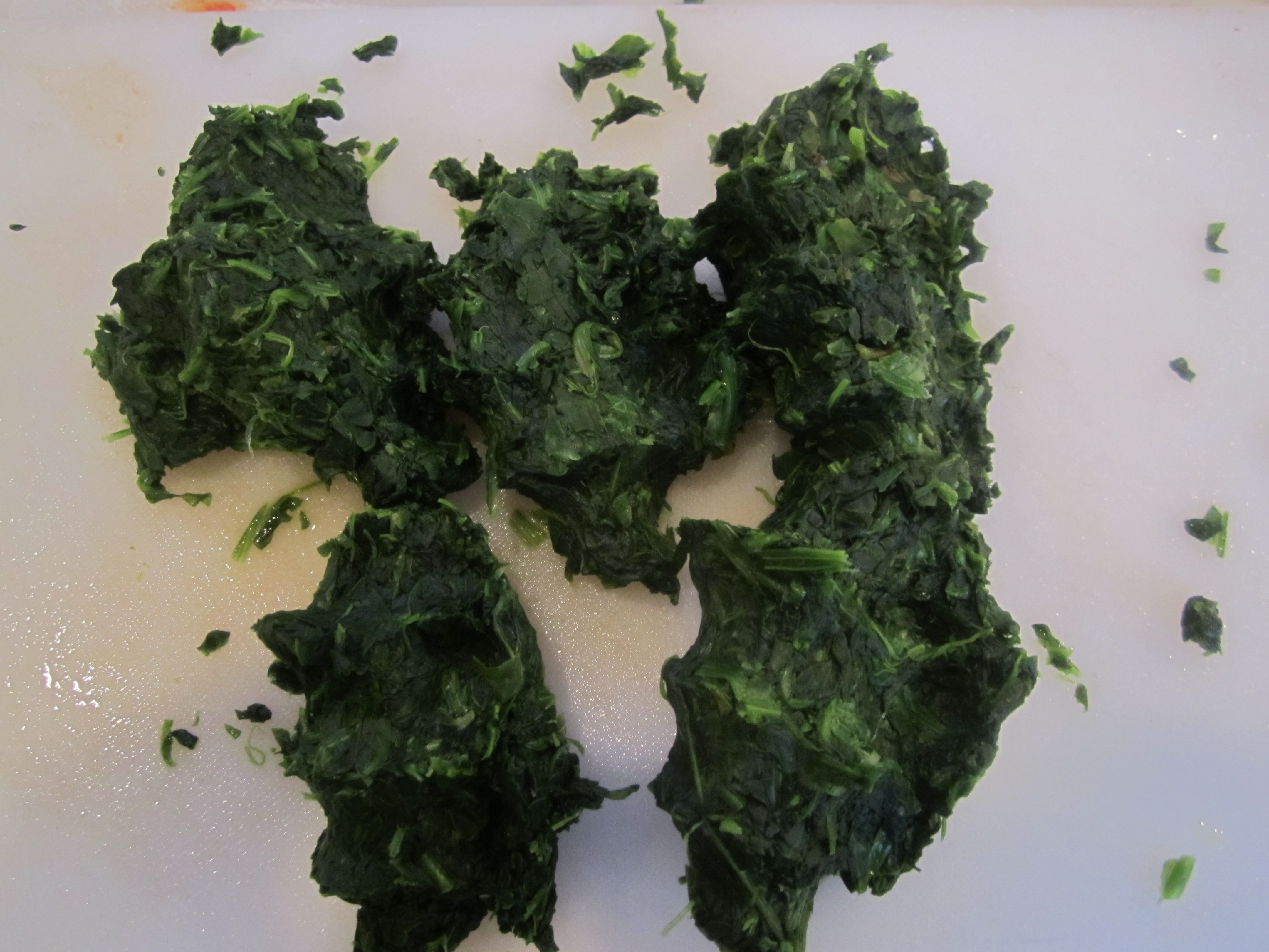 While eggplant slices are roasting,prepare the ricotta mixture: drain and squeeze the spinach in small bundles and set aside.