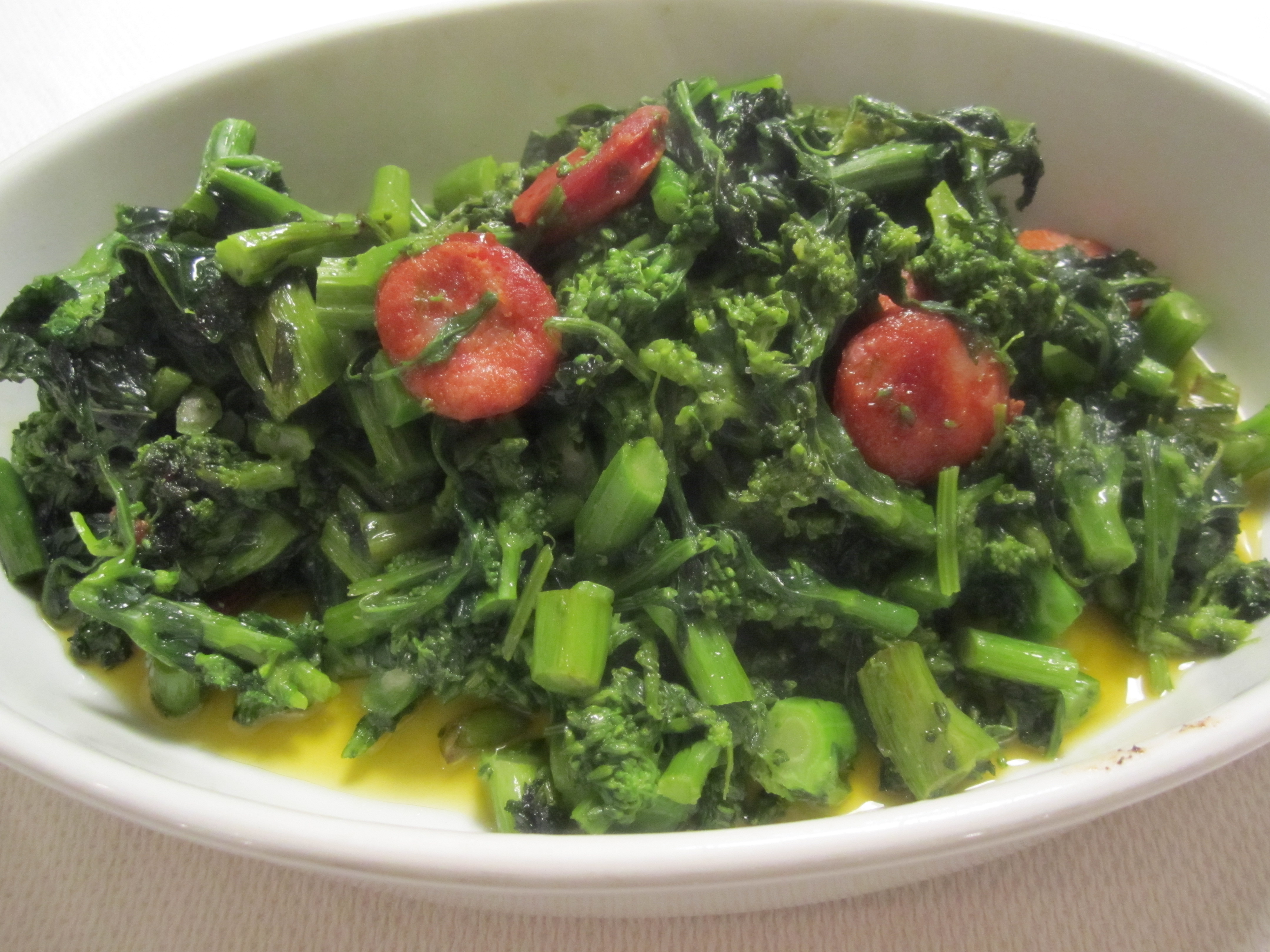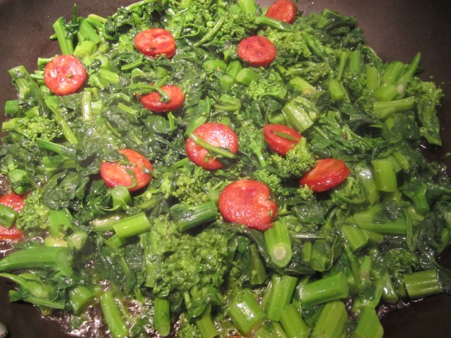 The sauteed spinach can also be found in my first post, “New Years Eve Dinner”. No surprises here, just boil it, squeeze it well, saute it in oil with some garlic, and add some homemade chicken broth to it at the end–the broth makes all the difference in the world. I now only make sauteed spinach when I have homemade chicken broth in the house (either freshly made or in the freezer). I’ve tried it with chicken bouillon and it doesn’t compare.