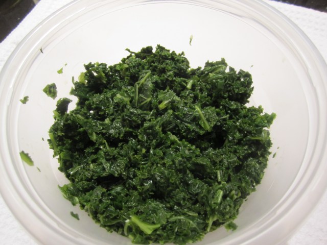 Spread the bundles with fingers, so that the leaves are free, loose, and no longer in clumps. Then give it a rough chop in both directions, to break down any extra-large leaves or stems.
