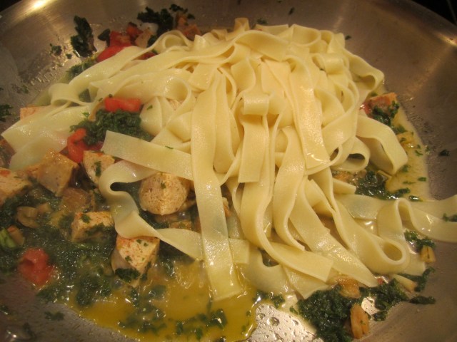 Turn off heat and add pesto.